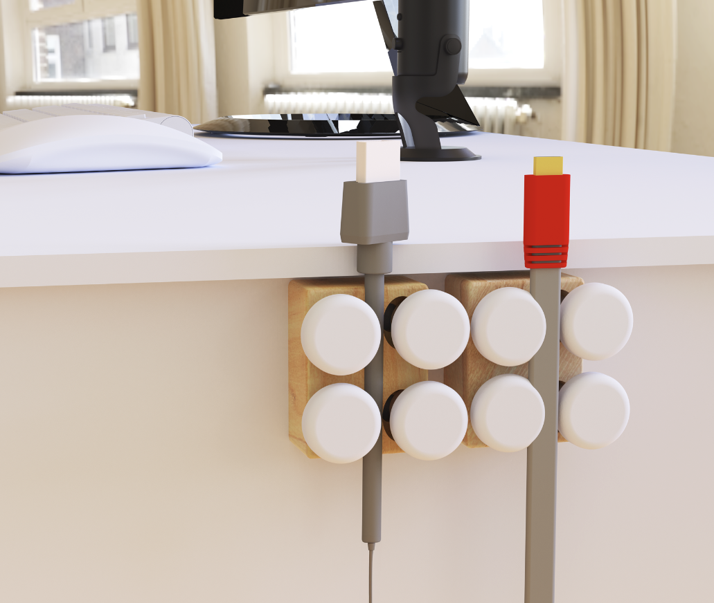Tego, a cord organizer, was designed to manage a range of cord thicknesses, making it adaptable for different devices and setups. I focused on creating a smooth-to-touch, tactile form that brings a sense of calm to high-traffic workspaces where tangled cords can easily become frustrating. The design emphasizes both function and sensory comfort—offering an intuitive way to keep cords neat while maintaining a soft, approachable material feel that enhances everyday organization.